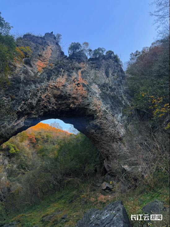 “他们发现了连当地人都没有发现的自然奇观。”随县昌岗镇红山坪村的一位农民惊讶地说。长岗双门洞隐藏在大洪山深处。由于有两个由高大的岩石形成的拱门贯穿山体,因此被称为“小门洞”。洞穴本身就像一把劈开山脉的巨斧。洞内的钟乳石形状各异,石笋、石帘捕捉到光线,发出温暖的光芒,地下河发出潺潺的声音,仿佛穿越了千年的时空。